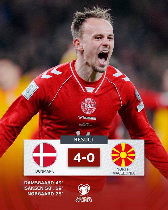 Explosiva goleada de Dinamarca