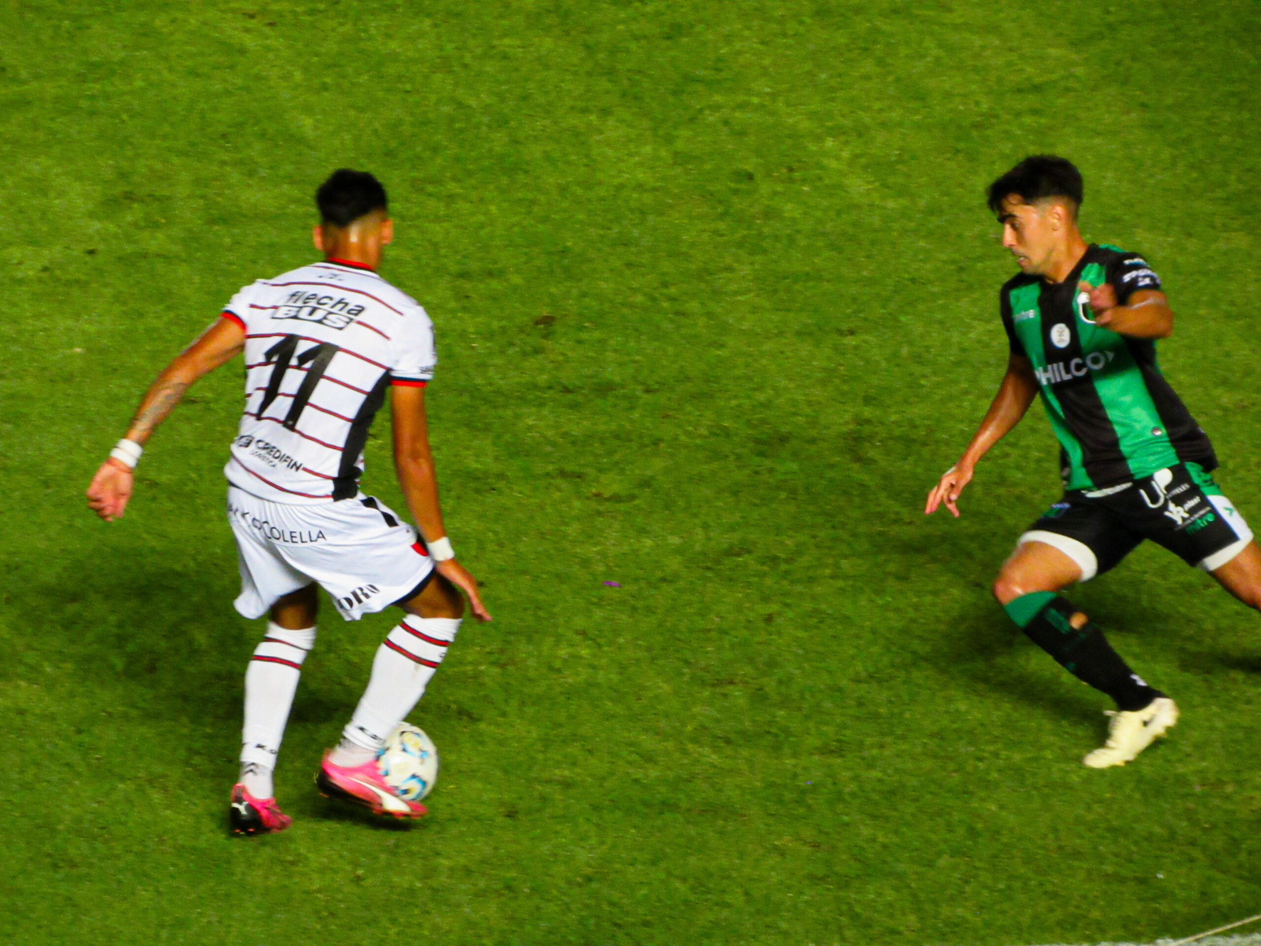 Nueva Chicago por su parte, dominaba el ritmo y los hilos del juego en el Brigadier López tuvo su primera llegada a los 28′ por medio de un córner que fue bien ejecutado al área donde Argüello se metió solo sin marca Pero la pelota terminó en un nuevo tiro de esquina.
