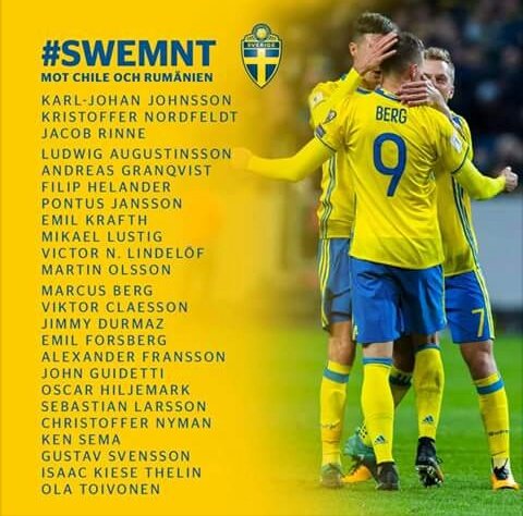 En la jornada de hoy, el técnico de la Selección Nacional de Suecia dio a conocer la lista de convocados para los amistosos frente a Chile y Rumania.