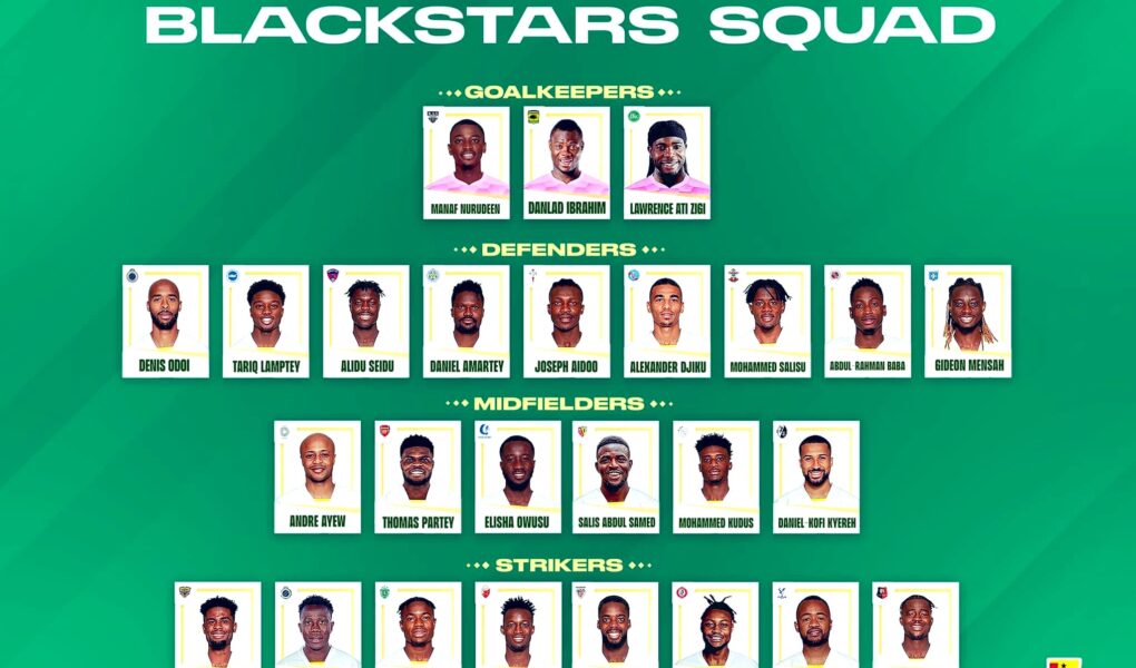 Estos fueron los seleccionados por Otto Addo, para representar al pais africano, en una nueva edición mundialista, recordemos que viene de teniendo participación desde el mundial Alemania 2006, Sudáfrica 2010 y Brasil 2014, cabe destacar que en Rusia 2018 no pudo clasificar, siendo su única ausencia.