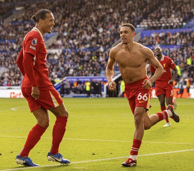 Un zurdazo salvador de Alexander-Arnold confirmó el triunfo sobre Leicester y ya es cuestión de tiempo para que se consagre campeón. Arsenal evitó la vuelta olímpica de los “Reds” con un contundente póker en Portman Road. Chelsea lo dio vuelta ante Fulham y reclama su lugar en la próxima Champions.