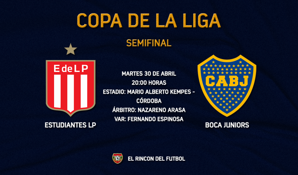 Esta noche, a las 20:00 horas, por la semifinal de la Copa de la Liga, Boca Juniors enfrentará a Estudiantes LP en el estadio Mario Alberto Kempes de Córdoba. El árbitro del encuentro será: Nazareno Arasa, y en el VAR: Fernando Espinosa. Mientras tanto, Vélez Sarsfield espera a su rival.