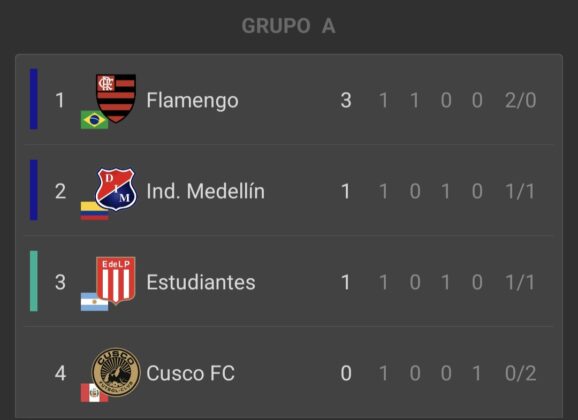 - Cusco (0) – (2) Flamengo: Bruno Henrique y Giorgian de Arrascaeta (F).