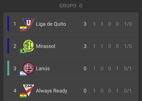 - Mirasol (1) – (0) Lanús: Joao Victor (M).