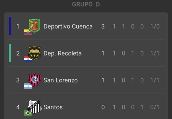 - Deportivo Cuenca (1) – (0) Santos: Gabriel Brazao (DC).
