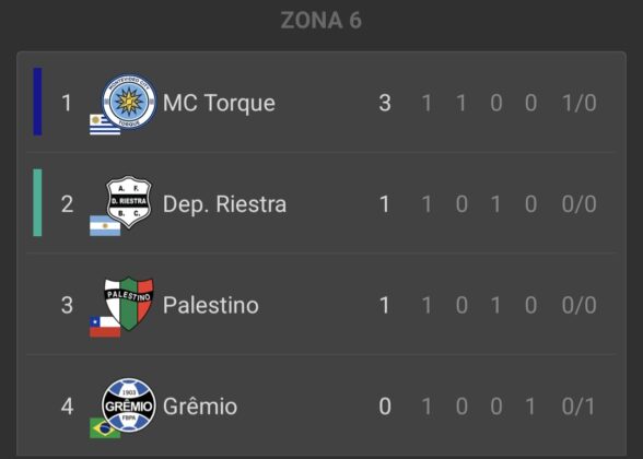 - Montevideo Torque (1) – (0) Gremio: Eduardo Agüero (MT).