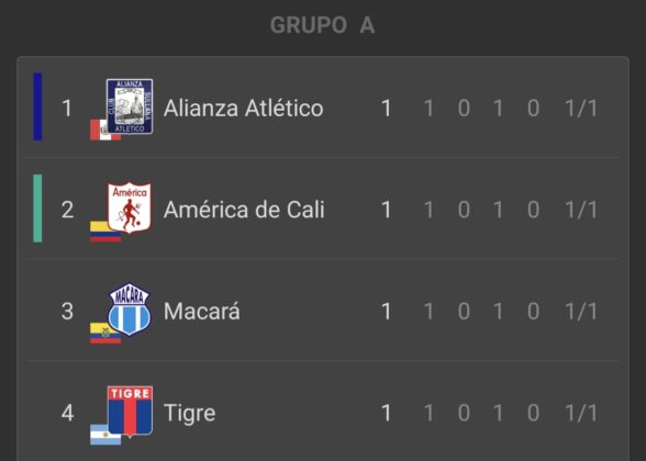 - Macará (1) – (1) América de Cali: Josen Escobar (M); Daniel Valencia (AC).