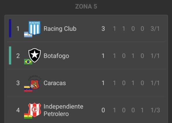 - Botafogo (1) – (1) Caracas: Wilfred Correa (C); Arthur Cabral (B).
