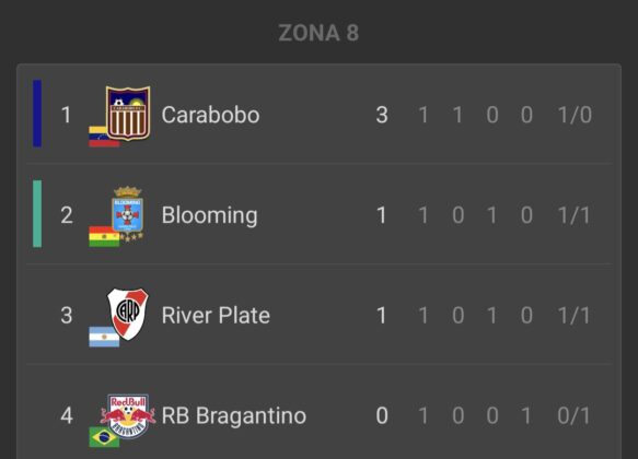 - Carabobo (1) – (0) Bragantino: Ezequiel Neira (C).