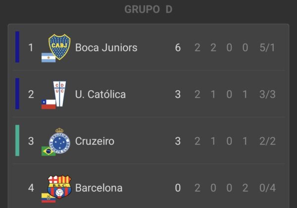 - Cruzeiro (1) – (2) Univ. Católica: Matheus Pereira (C); Justo Giani y Jimmy Martínez (UC).