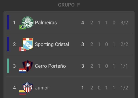 - Palmeiras (2) – (1) Sporting Cristal: Murilo Cerqueira y Juan Manuel López (P); Juan González (SC).